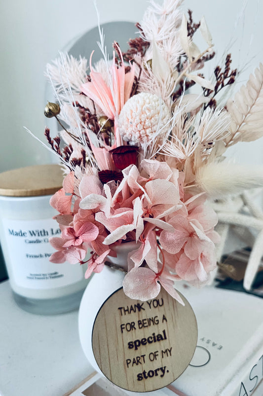 ‘Thank you for being a special part of my story’ Dried and Preserved Posy in Ceramic Vase