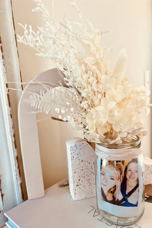 Personalised Vintage Glass Jar with Everlasting Floral Posy